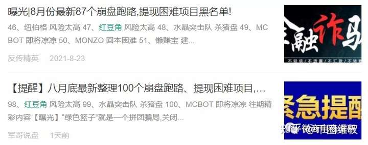 眼下,在多家自媒体发布的《8月份最新崩盘跑路和即将出事的平台》榜单当中,红豆角也已因风险太高而名列其中。