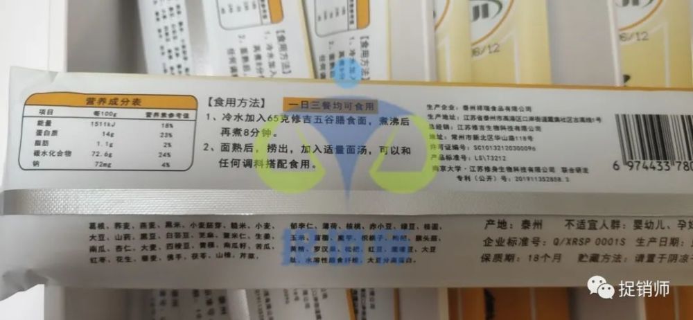 根据徐先生提供的产品图片捉销师发现,其家人购买了两款产品,分别为修吉缘植物固体饮料和修吉五谷膳食面。从产品外包装的信息得知: