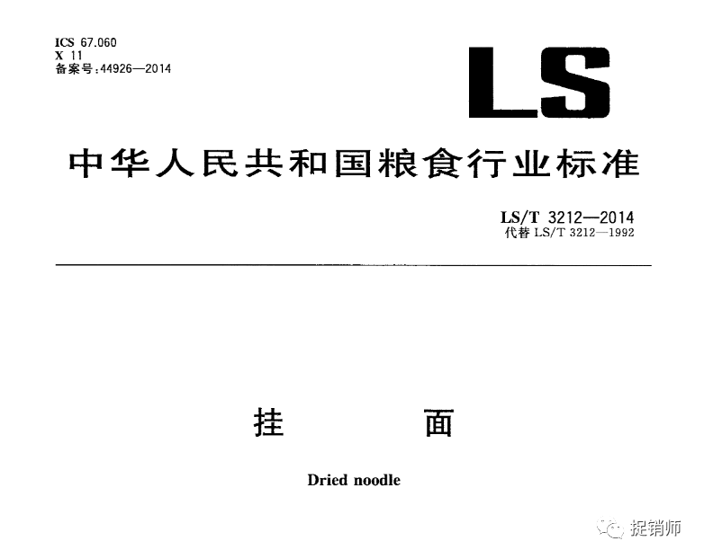 经查询LS/T3212为《中华人民共和国粮食行业标准-挂面》。