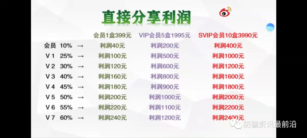 根据未来生物新零售的制度显示:消费者需要交纳399成为会员,VIP五盒1995元,SVIP十盒3990元,后两者盒数可累计,成为会员就能获得10%的推广收益。VIP可获得平级一代收入的10%,SVIP则是两代。
