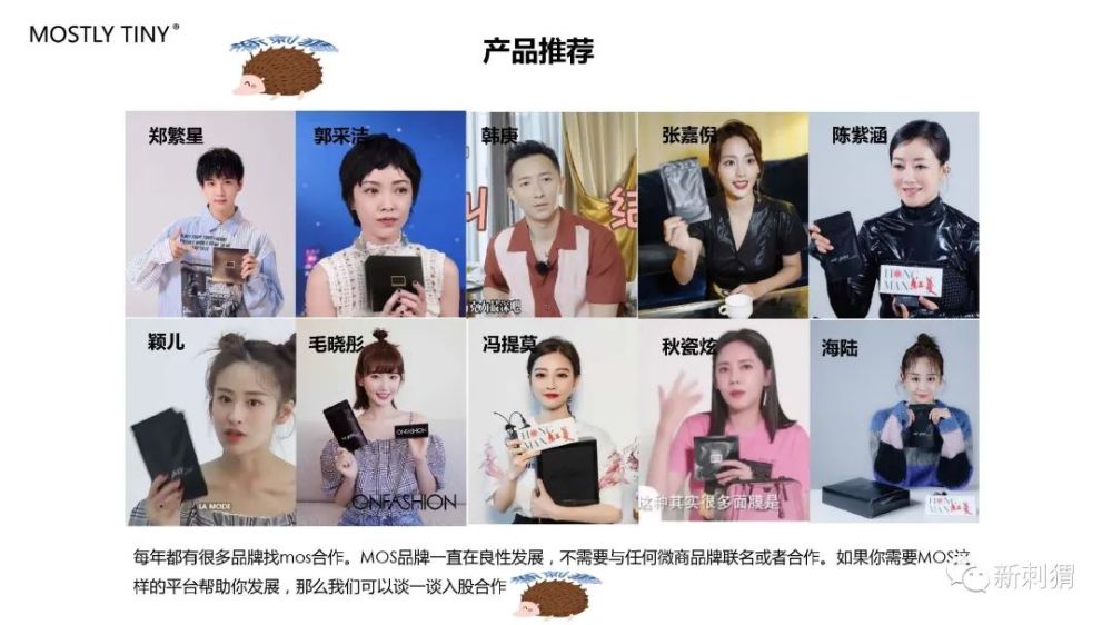 根据MOS代理商提供的举报材料可以看出,在MOS公开宣讲的合作方案中,27页PPT展示内容中通篇展示都是其公司的各种明星代言,而关于公司介绍只有寥寥数页,对于产品的相关介绍更是毫无提及。