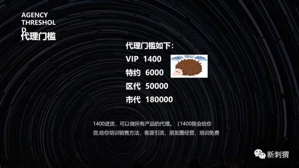 一直善于营造噱头制造话题的MOS对外号称品牌引流绝对是微商界的NO.1,加入即会送客源、送粉丝、送精准流量。其代理层级涉嫌传销,分为VIP、特约、区代、市代、首次拿货价格分别为1400元、6000元、5万元、18万元、代理称,进货1400元,纯利润大概500~600元左右,进货6000元纯利润大概3000~4000元左右。