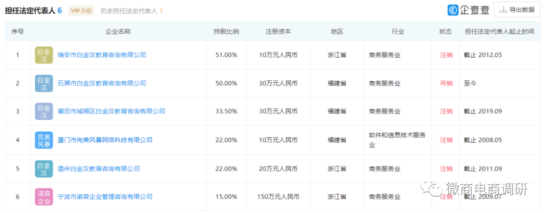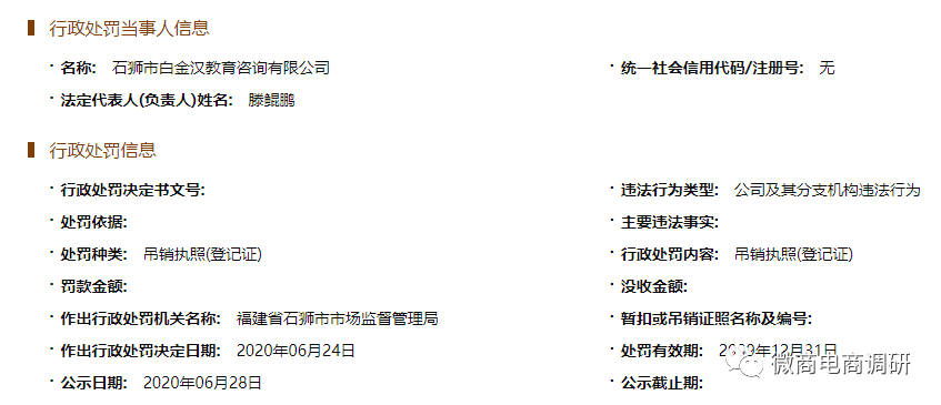 至于蜜诗艾妮公司的另一股东滕鲲鹏,据企查查显示,目前此人名下的企业共有6家,但这些公司不是被注销,就是被吊销了。除了蜜诗艾妮之外,他还投资了多家与“白金汉”有关的公司,其中,瑞安市白金汉教育咨询有限公司、莆田市城厢区白金汉教育咨询有限公司、温州白金汉教育咨询有限公司已被注销;石狮市白金汉教育咨询有限公司、厦门白金汉教育咨询有限公司所迎来的结局则是被吊销营业执照。
