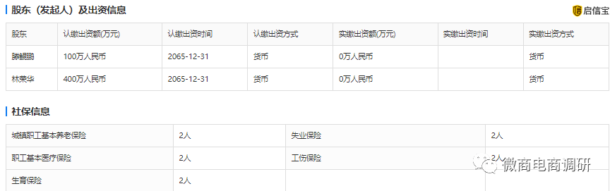 蜜诗艾妮的运营主体为蜜诗艾妮生物科技(厦门)有限公司。经查,该公司成立于2016年7月,曾用名:厦门市善之念企业管理有限公司(2016年至2019年),法定代表人以及大股东为林荣华,另一股东为滕鲲鹏,据2020年年报显示,该公司注册资金为500万元,实缴0元,参保人数为2人。