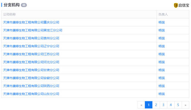 康婷的分支机构达48家,从北京、上海到贵州、内蒙古,遍布全国各地,而这些分公司背后的法定代表人都是杨琪。