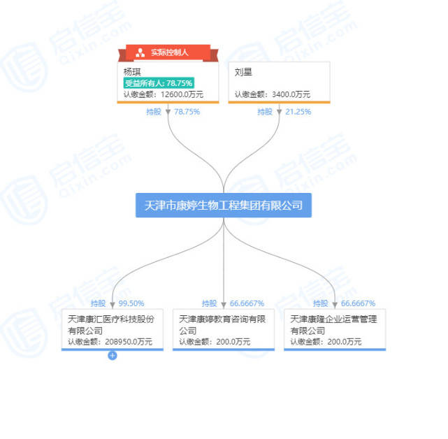 透过股权透视发现,康婷背后共有两大股东,总裁杨琪持股78.75%,刘星则持股21.25%。据报道,杨琪收获过不少“荣誉”,其中就包括天津市五一劳动奖章。