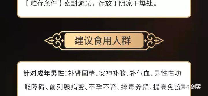 针对成年男性:补肾固精、安神补脑、补气血、男性性功