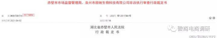2021年年初,《赤壁市市场监督管理局、泉州市颜驰生物科技有限公司非诉执行审查行政裁定书》的出现,一度引发了各界的广泛关注,据该裁判文书披露,申请执行人赤壁市市场监督管理局申请法院对被执行人泉州市颜驰生物科技有限公司执行罚款2000000元及没收违法所得7039279.99元,共计9039279.99元。