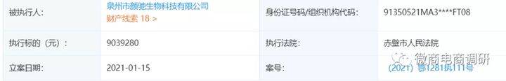 2021年1月15日,据企查查显示,泉州颜驰公司沦为被执行人,执行标的为9039280元。