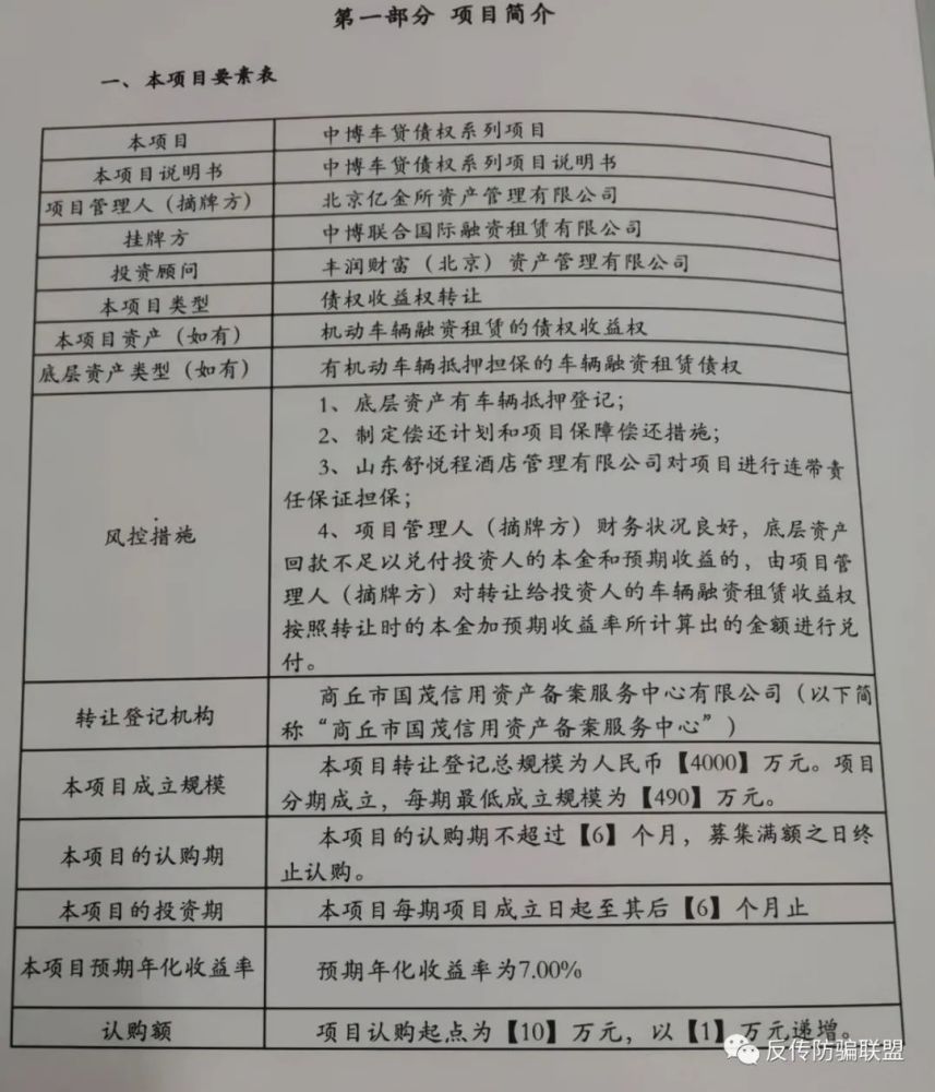 根据李女士收到的投资人份额确认函,这产品名称为“中博车贷02号”,产品期限6个月,起息日为2021年5月16日,产品期限6个月。“中博车贷02号”是北京亿金所在河南商丘市国茂信用资产备案服务中心有限公司摘牌的产品,认购起点为10万元,1万元递增。