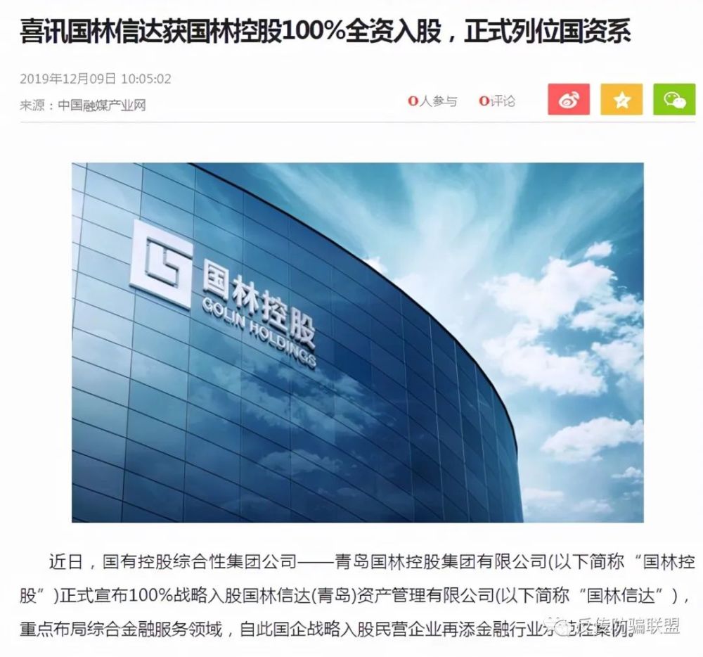 车健的国企之路开始于2019年,彼时,国商信联和国商信达先后在各大网站发布喜讯,宣称都获得国林控股100%全资入股,正式位列国资系,并对此评价为“国企战略入股民营企业再添金融行业示范案例”!