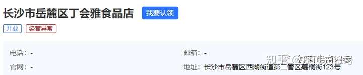 四年过去了,这家门店的现状如何?根据皇家御硒官网显示的“省肿瘤门店”的地址“长沙市岳麓区嘉桐街123号”,我们在爱企查上找到了一家使用该注册地址的企业,即长沙市岳麓区丁会雅食品店。