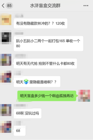 小王是一名在校大学生,最近和同学玩起了一种叫“水浒盲盒”的东西。不过小王并不是想要盲盒里的商品,而是通过买卖盲盒来“套利”。然而,如今小王利没套到,自己反倒被人给套路了。