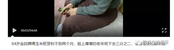 在网上,为了佐证这款产品的功效,各种案例也是层出不穷,有案例显示:84岁的金阿姨喝玉米胚芽粉不到两个月,脸上厚厚的老年斑下去三分之二,便秘难受也解决了。