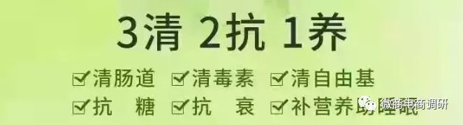 然而,据经销商提供的宣传材料显示,该产品共具有六大功效:清肠道、清毒素、清自由基、抗糖、抗衰、补营养助睡眠,简称“3清2抗1养”。