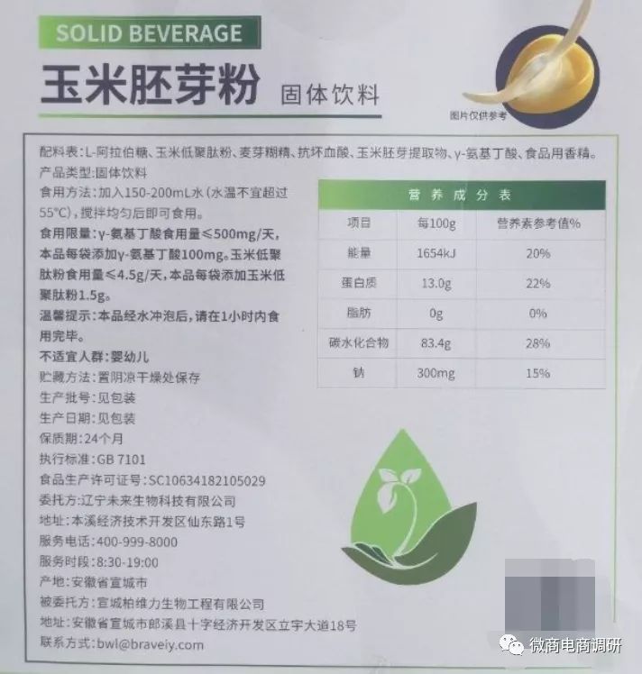 现如今,频繁出现在各大社交平台中的“逆龄粉”已吸引到了越来越多人的关注。据该产品外包装显示,“SUDOKU玉米胚芽粉”仅为固体饮料,属于普通食品,并非保健食品或药品,食品生产许可证号为SC10634182105029,委托方为辽宁未来生物科技有限公司,被委托方为宣城柏维力生物工程有限公司。