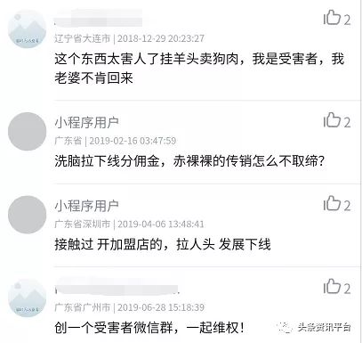 值得关注的是,在评论页面中,还有多位小程序用户声称该项目就是“拉人头发展下线”、是“赤裸裸的传销”等,还有用户希望能成立一个朗诗德的受害者维权群,以便共同维权。