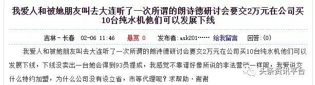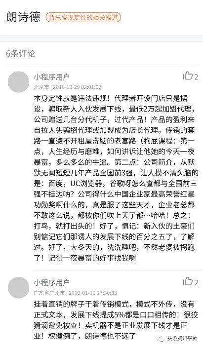 来源:头条资讯平台,反传销彭柱团队转载!收录#朗诗德#投诉不止#负面不断