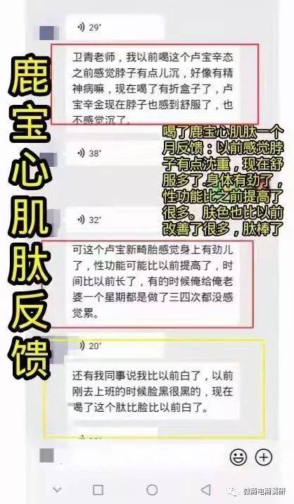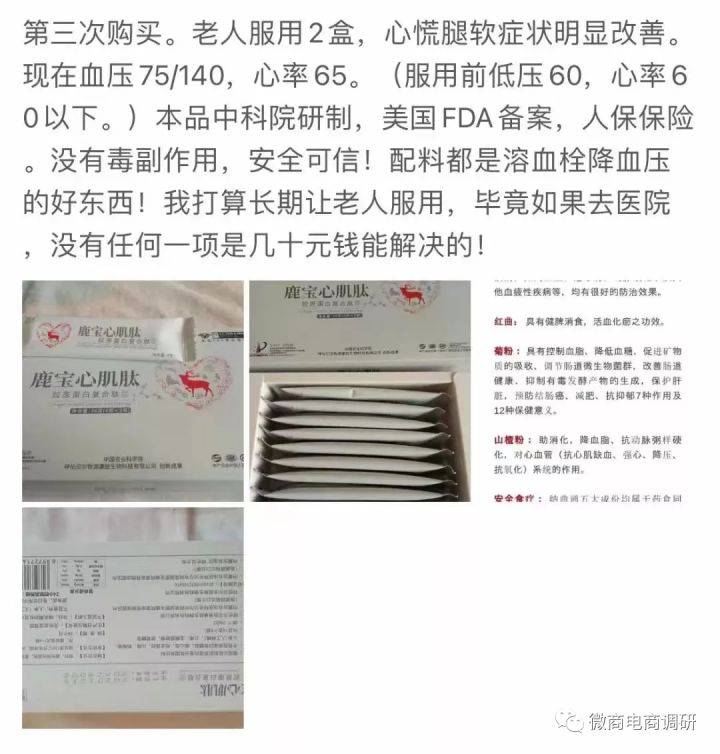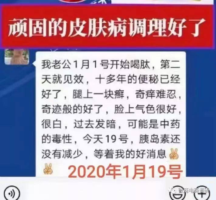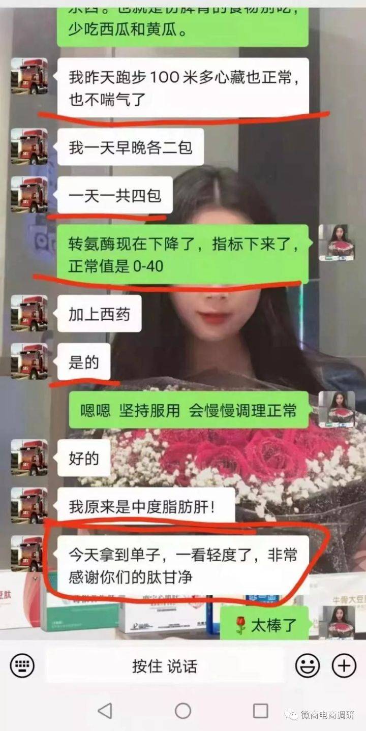 神乎其神的宣传是服用肽甘净,可以治疗各种病症。比如有人喝了康美新零售平台上购买的牛骨肽,咽炎、支气管炎调理好了,有人说喝了鹿宝心肌肽一个月,沉重的脖子就舒服多了,性功能比一起提高了很多,肤色也比以前改善了很多,还有人说喝了肽之后,顽固的皮肤病调理好了,类似的产品治病的宣传有很多。