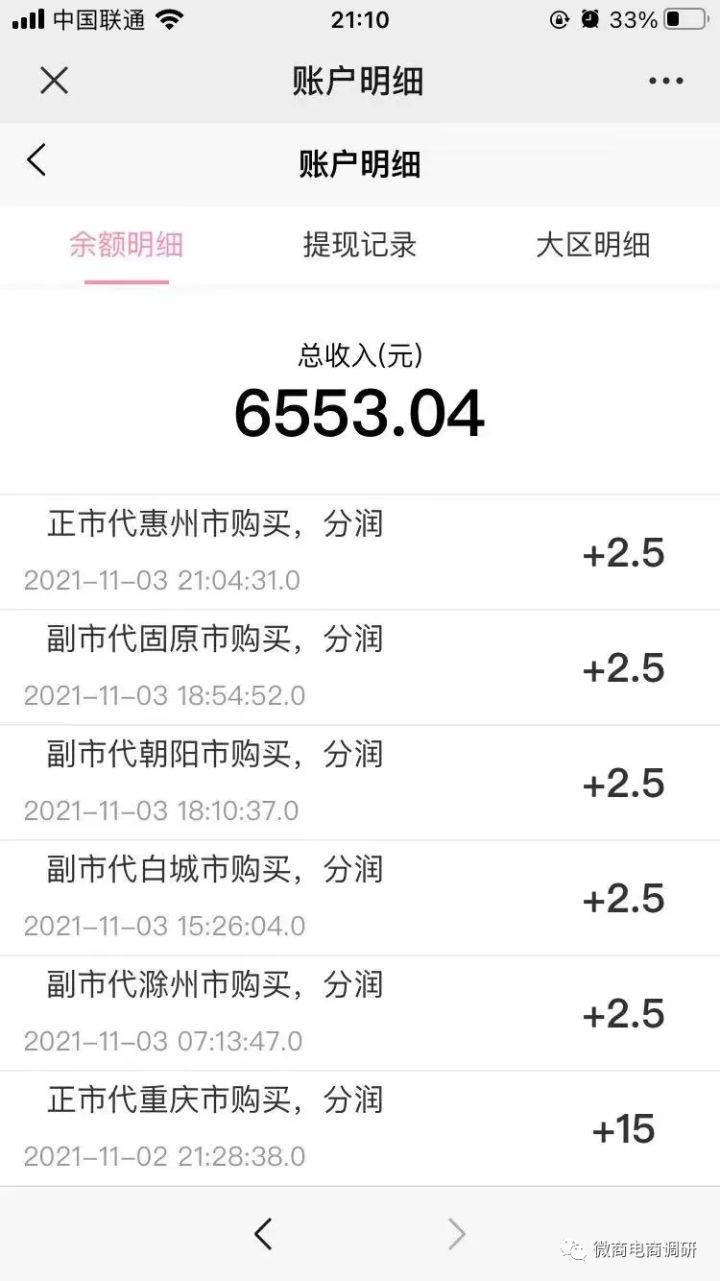 康美新零售还宣传自己有三个静态板块的收入,第一个静态板块是省代和市代,意思就是如果说代理拿了省代和市代,这个省、这个市所有区域范围内的会员,每有一单公司都会给代理分红。如果说拿了一个省代,在这个省的区域范围之内,如果说出现了一单69.9的订单,那么省代就直接得到7.5元奖励,如果说省代出现了一个经理套餐,直接分37.5元,如果说出现了一单总监套餐,直接得到112.5元奖励。也就是说拿了省代和市代之后,即使这个里面不是自己推广的会员,不是自己的市场,那么别人在你的省市发展会员了,去分享去推广了,只要有人下单,省代直接就被动的赚钱。市代每出一单69.9元会员套餐的大2.5元,每卖出一个经理套餐分12.5元,每卖出一个总监套餐赚37.5元,省代和市代获得还需要一定资格。代理在平台直推2000元钱业绩,才可以申请市代,代理在平台直推8000元钱的业绩,才可以申请省代。