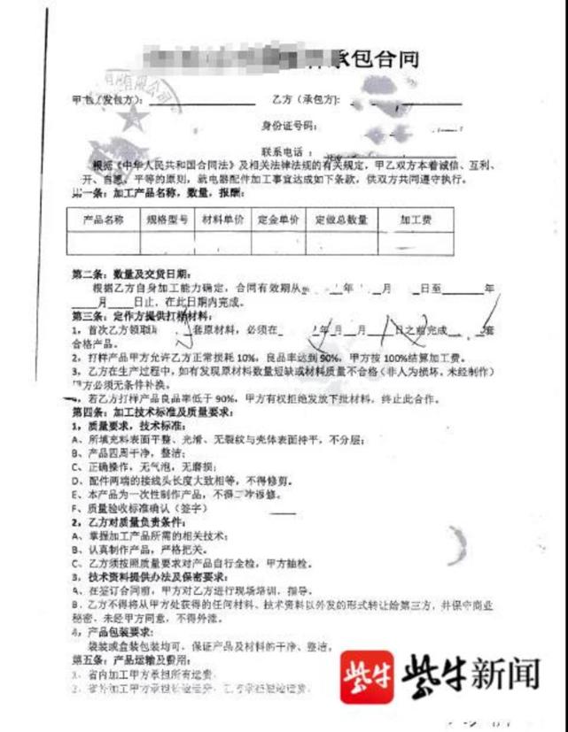 整洁的办公场所,业务员对产品加工的耐心演示,以及齐全的公司证照,让方敏逐渐放下了戒备,当场便签订了加工合同,付了14000元押金,带着5000套加工零件回了家。没过多久,方敏满心欢喜地带着做好的产品来到公司时,业务员却表示:“所有产品都不合格,不能收!押金也不能退!”方敏很是纳闷,心想:不应该啊,这都是自己用心按着教程视频做的,怎么会全部不合格呢?