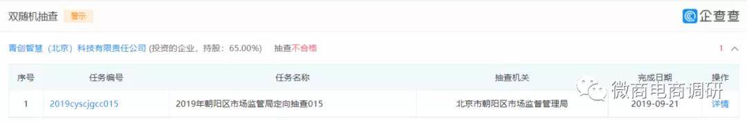 回首过往,据企查查显示,在2019年下半年,该公司曾在有关监管部门的抽检中被提示为“不合格”。