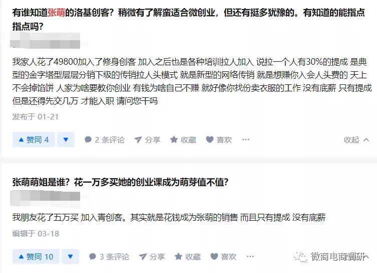 还有网友更是直接指出:“我家人花了49800加入了修身创客,加入之后也是各种培训拉人加入,说拉一个人有30%的提成,就是想赚你入会人头费的,天上不会掉馅饼,人家为啥要教你创业,有钱为啥自己不赚?就好像你找份卖衣服的工作,没有底薪,只有提成,但是还得先交几万才能入职,请问您干吗?”