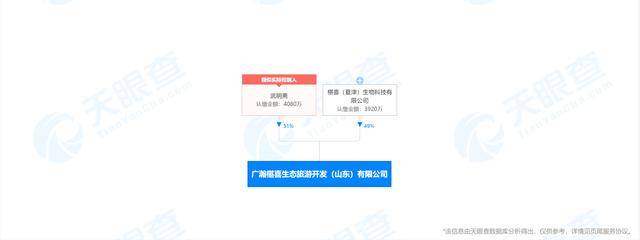 据天眼查APP显示,广瀚椹喜生态旅游开发(山东)有限公司成立于2020年2月19日,注册资本为8000万,武明斋担任法人,持股51%,椹喜(夏津)生物科技有限公司持股49%。