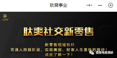 艾常释社交新零售,因“艾常释肽爽喷雾”这款产品而闻名,因此也得名“肽爽社交新零售”。眼下,在微信小程序“艾常释新零售”的首页,肽爽社交新零售就被标示为是“普通人跨越阶层、实现美丽、财富人生最快的捷径”。