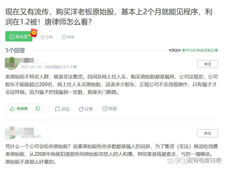 此事并非无风起浪,在微博和百度知道等平台上,就有网友控诉和质疑“洋老板原始股”一事。