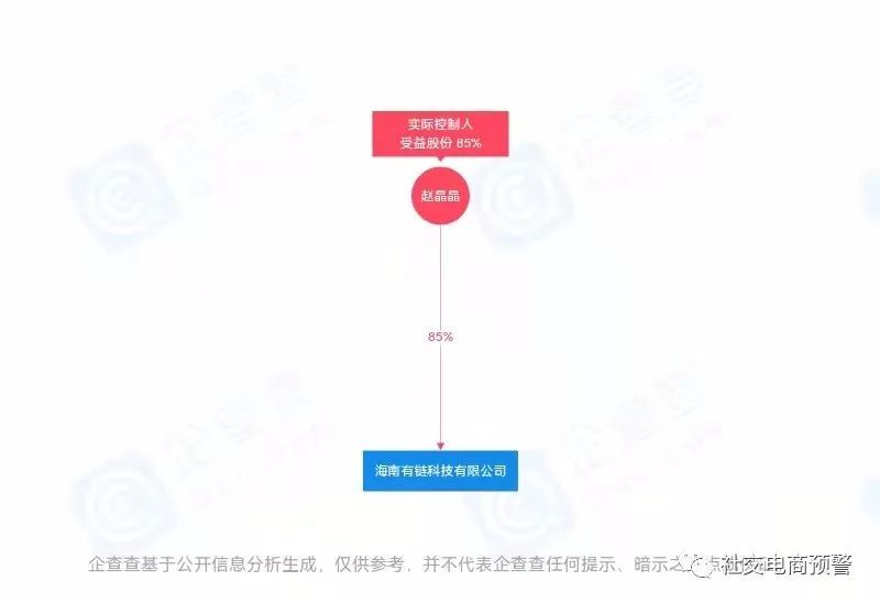 据企查查APP数据显示,海南有链成立于2021年7月21日,法人黄志益,持股15%;赵晶晶持股85%;注册资本100万元,实缴-;旗下拥有海豹短视频商标。备案网站(网址http://www.youlian.fund)无法打开。
