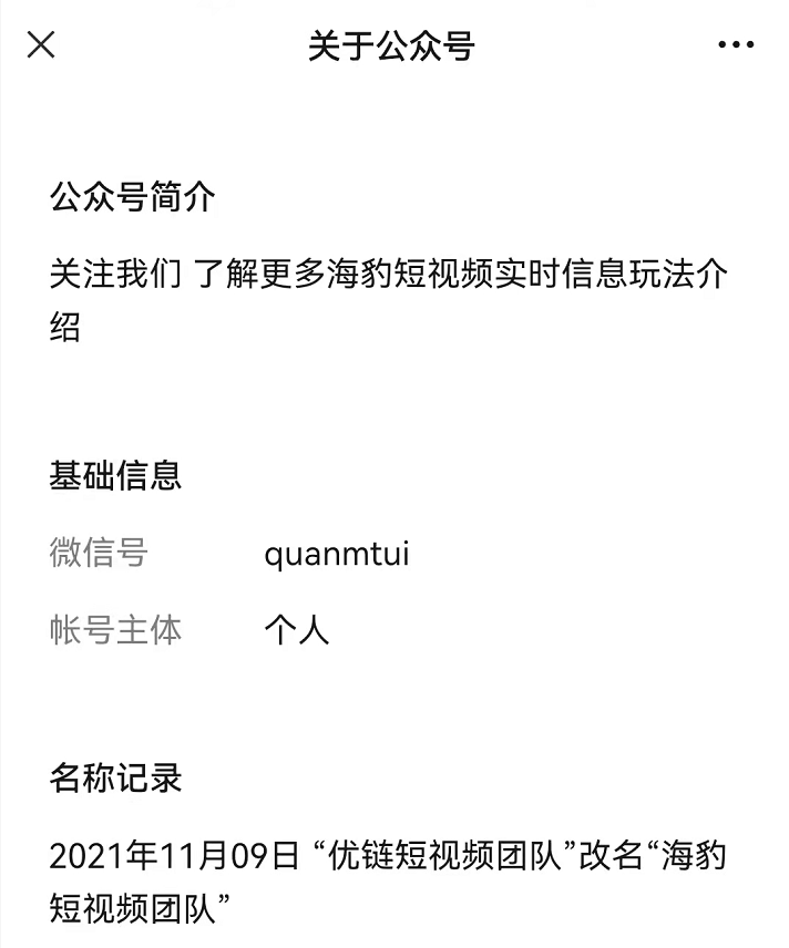根据一个名为“海豹短视频团队”的微信公众号的名称记录显示:2021年11月9日,“优链短视频团队”改名“海豹短视频”。关于改名事件或许有人会认为这是笔者的主观臆测,其实只需对比优链短视频和海豹短视频的市场运作制度就会真相大白。