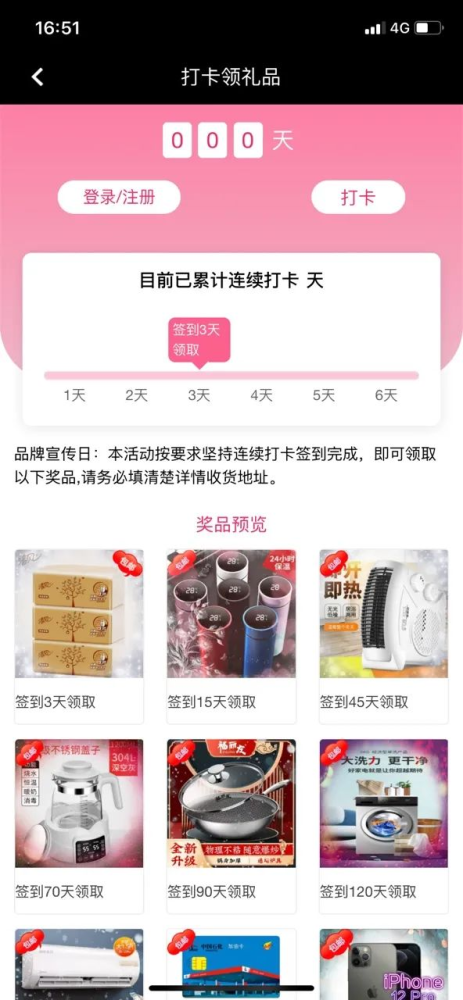 小编被诱骗下载此款APP有一个很大的原因,就是广告中写着签到送礼品,注册就领28,每日签到领3元,大额充值、邀请好友还有高额返现,签到一年甚至可以拿iPhone12,这等好事想想就是假的,平台上的“钱”只是一个数字,骗子只需动动鼠标键盘就能改变。