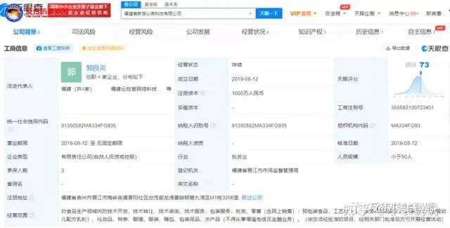 据天眼查显示,福建省新芽心燕科技有限公司成立于2019年8月12日 ,位于福建省泉州市晋江市梅岭街道晋阳社区世茂御龙湾曼哈顿第九湾区M1栋3206室,注册资本1000万,实缴不详,人员规模小于50人,参保人数3人,法人代表郭良炎任执行董事兼总经理,持股50%,陈文彬任监事,持股也是50%。