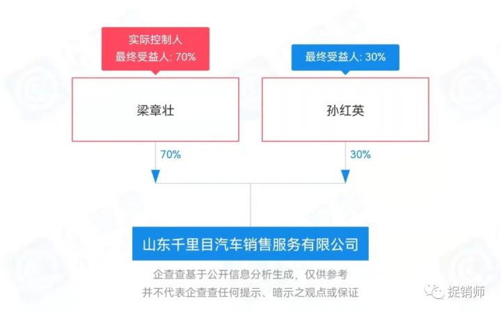 根据企查查APP数据显示,山东千里目成立于2021年11月1日,法人梁章壮持股70%,孙红英持股30%。注册资本1000万,实缴-。