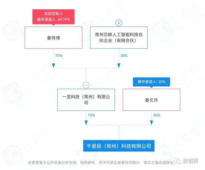 据企查查APP显示,千里目(常州)科技有限公司成立于2019年6月13日,法人朱逊华,实际控制人姜传博;姜文月持股30%。