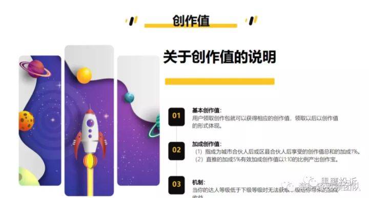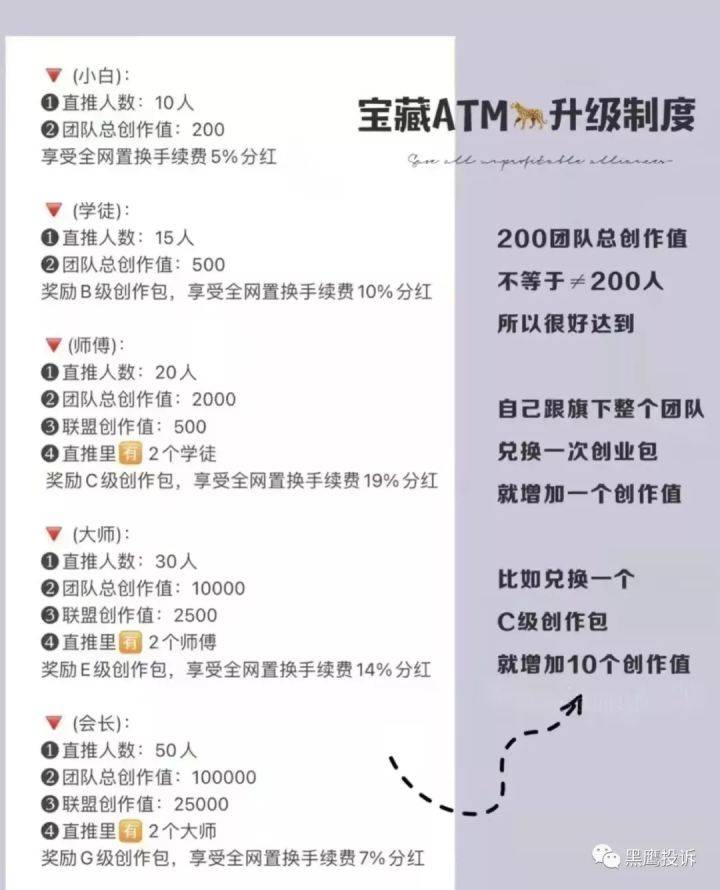 小白等级:直推10人以上,无限代团队整体创作值达到200(整个团队无限代200人如果下面团队有上任务的创作值也算进去,比如下级无限代团队里面出现了2个E级创作包。每个是活跃加成100,团队创作值直接就是200了 不需要500人。)