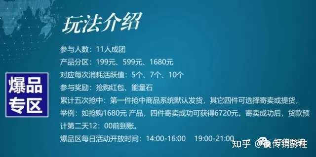 二、11人拼单,中奖概率是11:1,选择一件同价位产品参与抢购,支付199元、599元、1680元,没抢中的会立即退还。每次参与抢购都有红包及能量石奖励。累计抢中5次为一轮。累计抢中5次,第一件抢中商品系统默认发货。其它4件可选择提货或寄卖。4件寄卖成功后可获得5件总货款的80%回款(次日12:00到余额)。