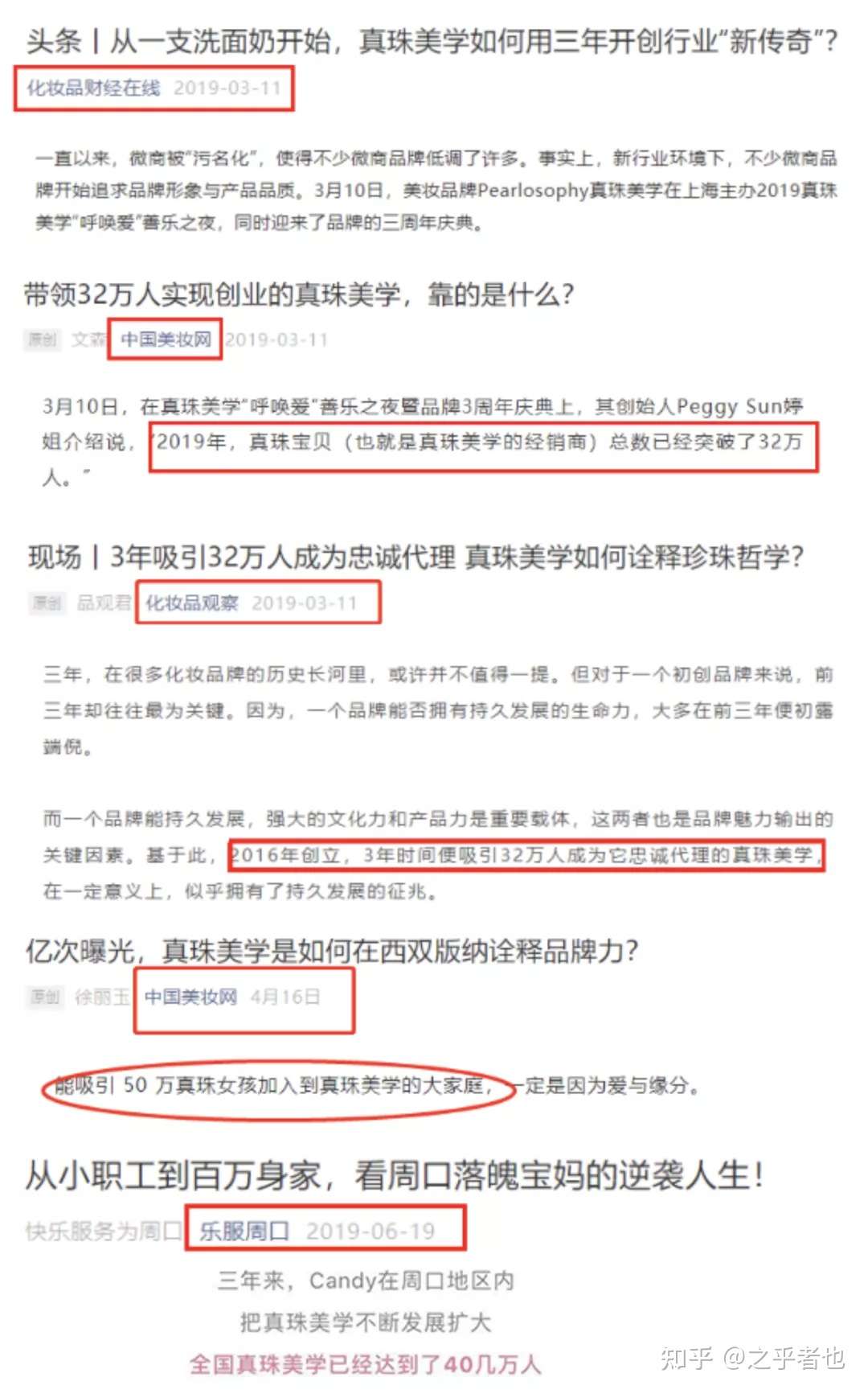 通过搜索发现,大量媒体曾报道过珍珠美学的微商团队,包括化妆品行业的几个知名媒体。