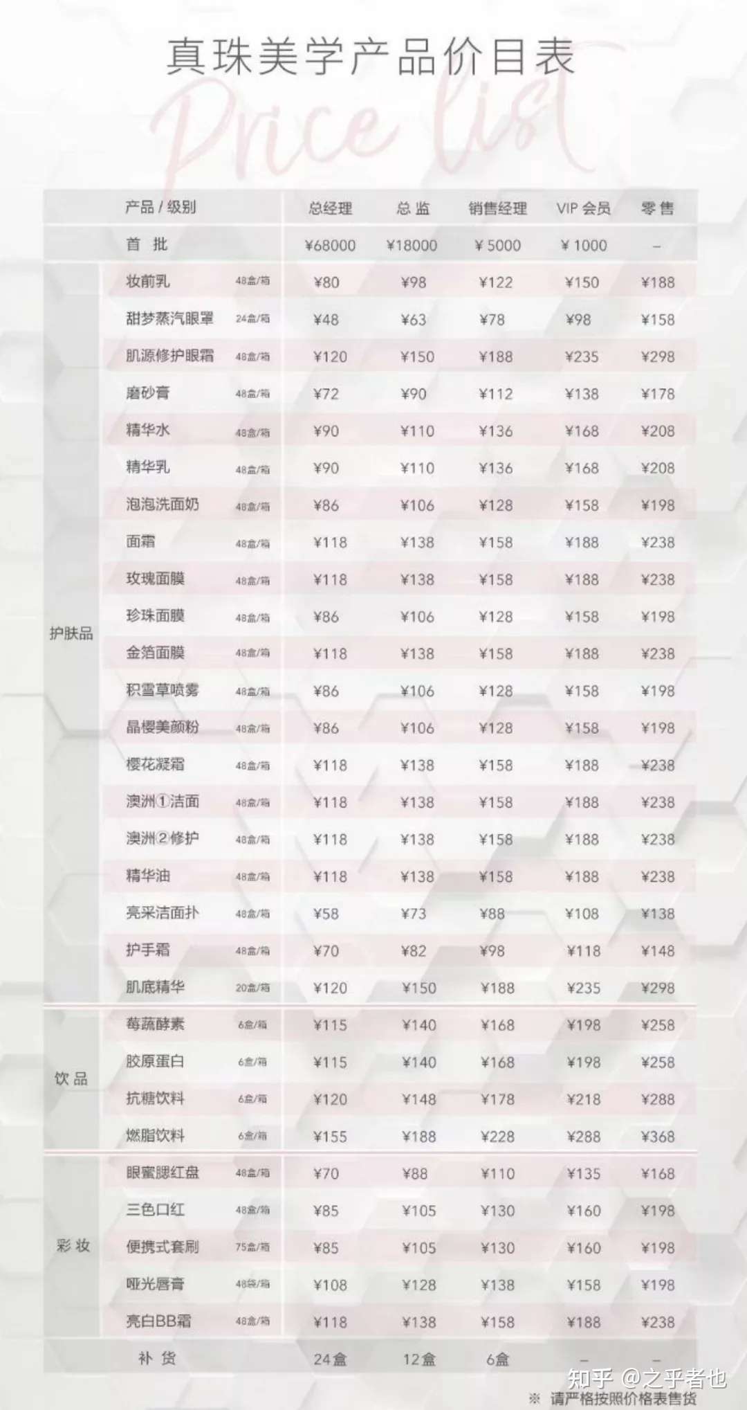 据多个媒体报道,真珠美学微商曾用设置五级代理模式,从低到高分别为: