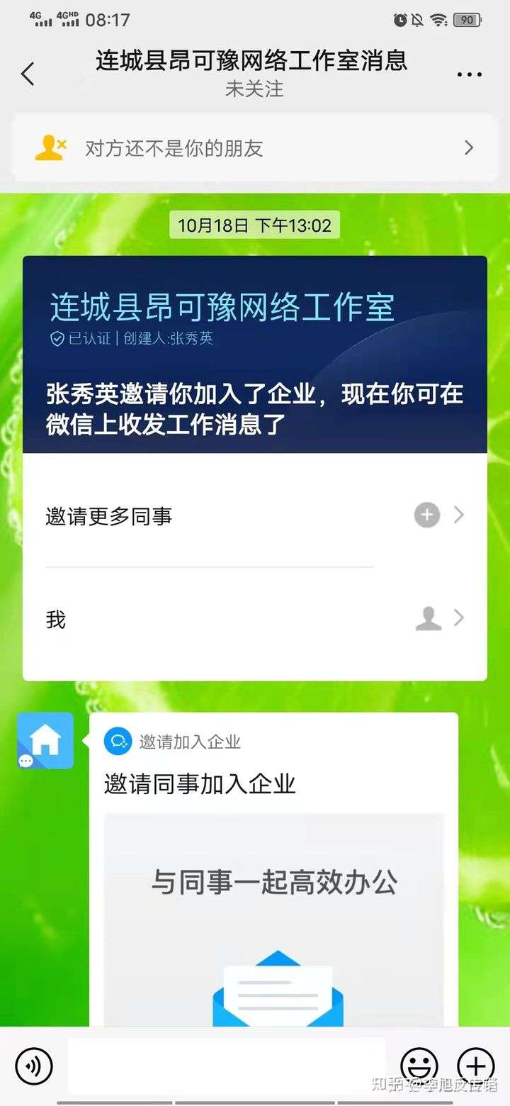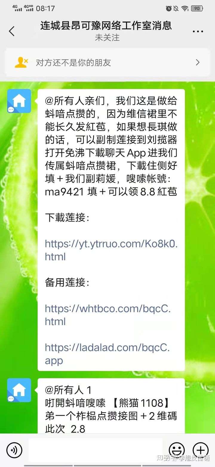 在2021年10月18日下午13:02分,有个连城县昂可豫网络工作室的企业微信加我,就开始发给抖音点赞的任务,本来我没有在意,但是他是做完一单就直接支付宝转账,我抱着好奇的心理试了一下,发现真的能够收到钱款,大概是一单2元。在做了5,6单之后,群里说下载 JJApp可以领取8.8元红包,下载了一下,之后企业微信就找不着了。后来报警之后又搜了一次,赶紧截屏保存,但是也仅仅就这一下,之后也是搜得到但是找不着。