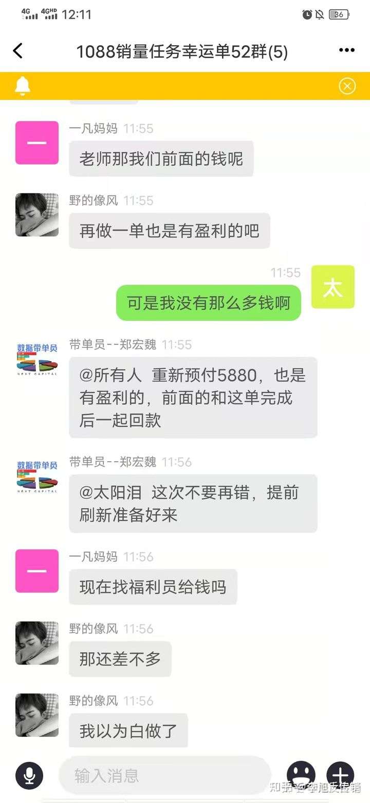 第五天,我想再做一次1088或者588、108的单子,但是福利员说要留给新人做,就不能给我们了。而且据群主说销量单是需要抢的,并不是每个人都可以抢得到(现在想想真是傻,居然还真的信)