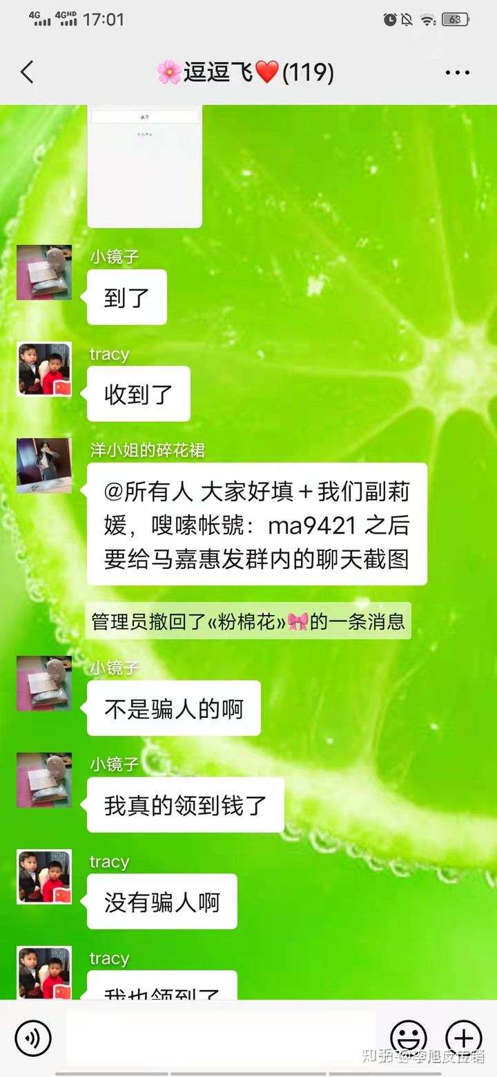 刚开始3天,我是抱着观望的态度做的,但是也只是做点赞任务。至于怎么做任务,就是群管理员会发群公告,告诉我们在xx至xx时间段给某位抖音博主点赞,截图发到群里和给自己的福利员,之后在时间截止的时候,管理员会在群里发红包。每天早上9:00-9:30在群里回复签到,可以找福利员领取6.6元红包;如果连续做够10单,可以联系福利员领取18.8元红包,如果全天满单,可以领取108.8元红包。但是如果是只想做抖音点赞就能够连续10单是不可能的,总会到连续第9单或第7,8单的时候有销量单。而且平常基本上每天都会有爱心捐赠的任务,当时真的是脑子进水了,觉得他们好有爱心啊,还给不同的福利机构捐款,之后还会给我们佣金。现在想想,不过是又是一种骗取信任的手段而已。当时知道签到和只是单纯做单可以领红包的时候,还嘲笑他们傻,这么轻易给别人分饼吃。现在想想我才是傻逼,怎么可能会有天上掉馅饼的好事,怎么可能会有不费脑、不费力,动动手指头就能挣钱的好事。还好还好当初做任务的时候让留了截图,不然以我的性格,被骗了估计什么证据都留不下。
