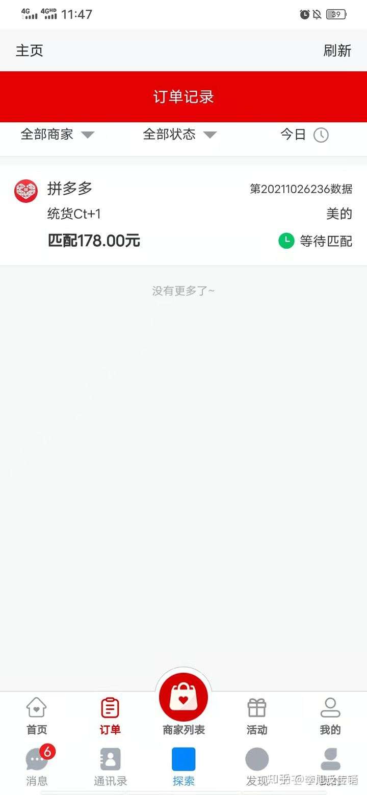 3天后,发现在群里说不了话,显示被禁言状态。问了福利员才知道原来必须要做销量单才可以被解禁。因为之前2天没有体现,钱包大概有100多,不想错过,就在福利员的带领下做了个最小的108的单,返回130元。之后又做了一次588的单,收入668。由于当天全单,最后取得了108.8的红包奖励。第四天又做了一次1088的单,返现了1266。