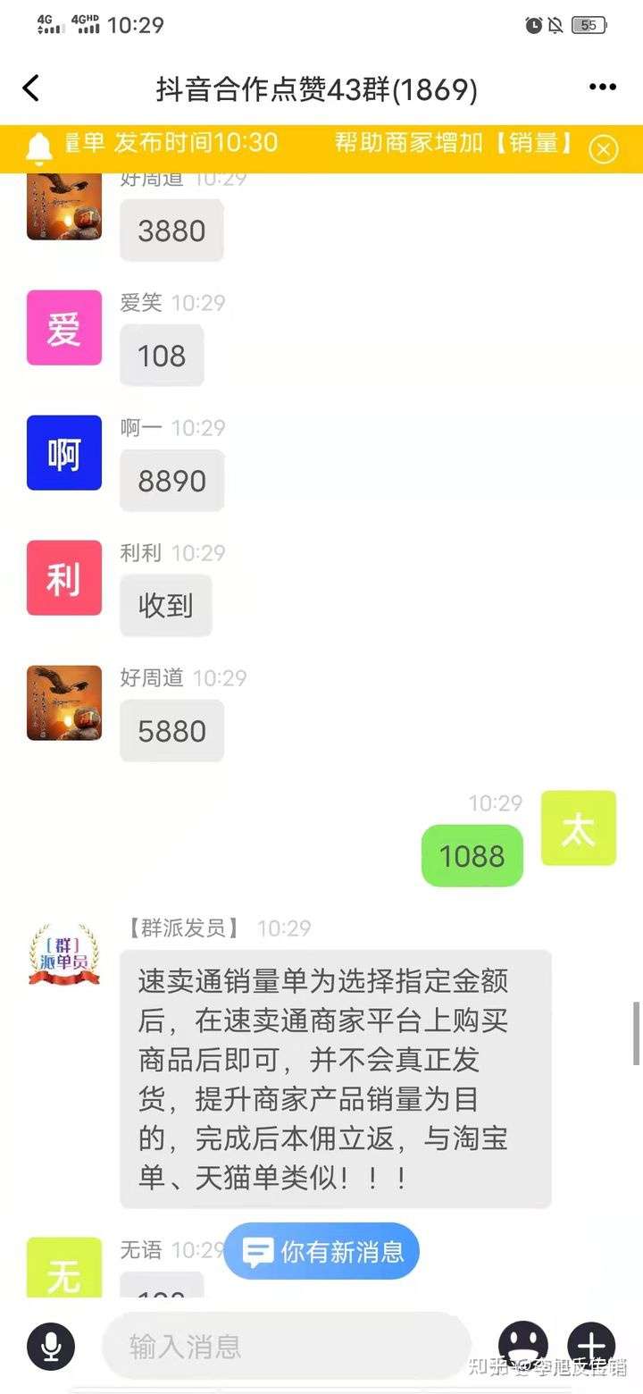 在群里不仅有给抖音博主点赞任务还有刷单任务,108/588/1088等到8990等不同金额。刷单任务结束后,商家会依据刷单金额连本带利的返还至个人银行账号。做刷单任务需要先个人垫付金额至指定银行账号,之后再由做单老师带领刷单,刷单任务结束后,商家会依据刷单金额连本带利的返还至个人银行账号,以此获得个人利润。刷单金额越高,获得利润越大。