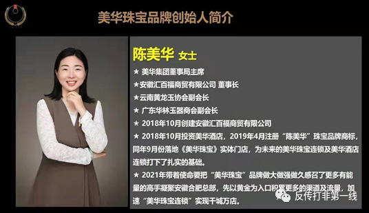 据商学院老师介绍称,美华珠宝最大的市场来源于山东团队。团队长曾经是“翰林黄金”的高管。而“翰林黄金”在一线君早前的文章中曾经予以报道。