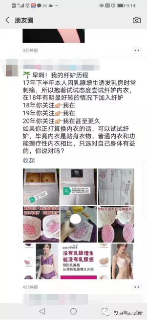 然而微商电商调研咨询专业人事获悉:对于乳房疾病患者,胸罩应该以舒适透气为宜,并没有什么特殊材料可以使内衣起到对乳房疾病的治疗作用。乳腺增生是现在临床上非常多见的一种症状,而且无论是已婚女性还是青春期的女性都会患上。对于有乳腺增生的患者建议日常生活中一定要选择穿宽松,纯棉的内衣,不要穿的过紧(尤其是纤妒内衣这种还具有丰胸效果的紧身内衣)让乳房有压迫感,否则会导致乳房出现疼痛或者不适的症状。其次建议每天睡前也可以不用穿内衣,这样也能解放乳房,使乳房彻底得到放松,同时也能舒缓胸部的压力。