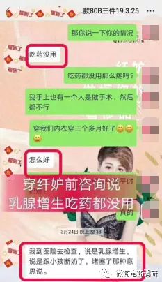 据纤妒内衣的代理们宣传:纤妒内衣能改善治疗结节、增生、纤维瘤;乳房肿块胀痛穿纤妒内衣一个月就好了;乳腺增生吃药手术都没有用,穿纤妒内衣三个月就好了。