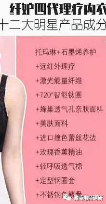 纤妒不仅将普通用途的内衣宣传成了有消炎消肿、治疗疾病效果的神奇产品,还采用采用三级分销,“拉人头”等方式发展团队,涉嫌违法违规。微商电商调研在此提醒,凡是产品或服务严重偏离自身市场价值、违背常识且所谓经营行为本质上没有没有创造出社会价值,就该合理怀疑该产品或服务含有“欺诈”性质。凡是有拉人头、分等级靠人头费用才能生存和发展的组织,就要警醒,不要落入圈套。