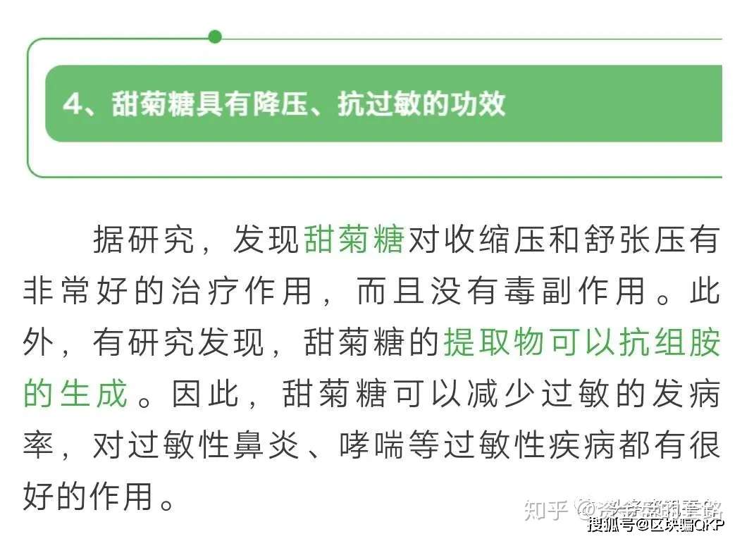 然而,冠龙生物公司在其官方微信公众号上除了介绍了甜菊糖的来历,还宣传甜菊糖拥有以下多种保健功效:可作为糖尿病人的甜味剂和辅助治疗剂;甜菊糖具有改善肠胃的功能;甜菊糖具有降低血液中胆固醇和甘油三醇的含量的功效;甜菊糖具有降压、抗过敏的功效;甜菊糖具有预防龋齿等口腔疾病的功效。